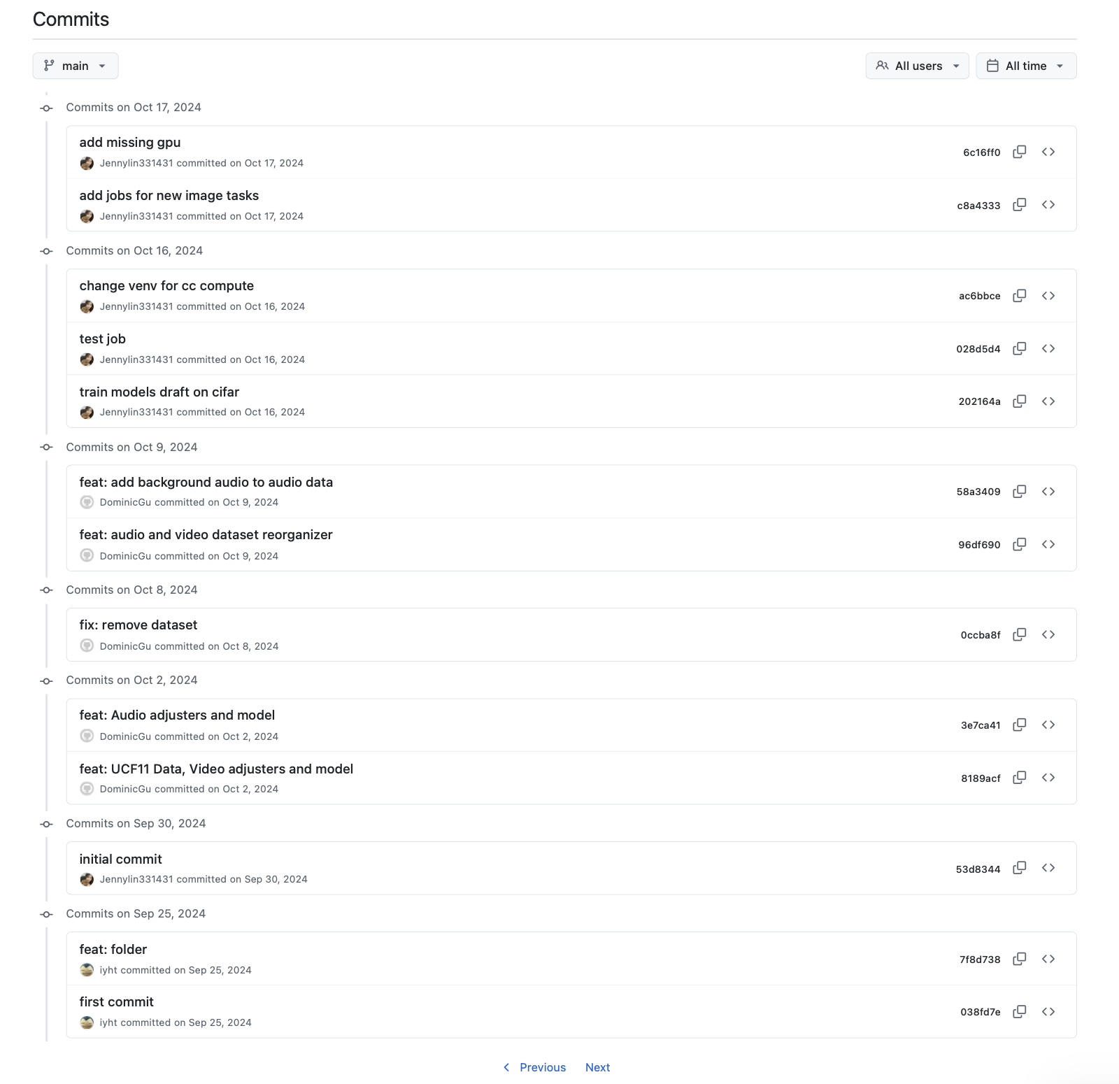 JMH在2025年被我录取到UofT PhD program后,3月开始远程加入该项目,当时项目基本已经定型,以下是git commits截图。