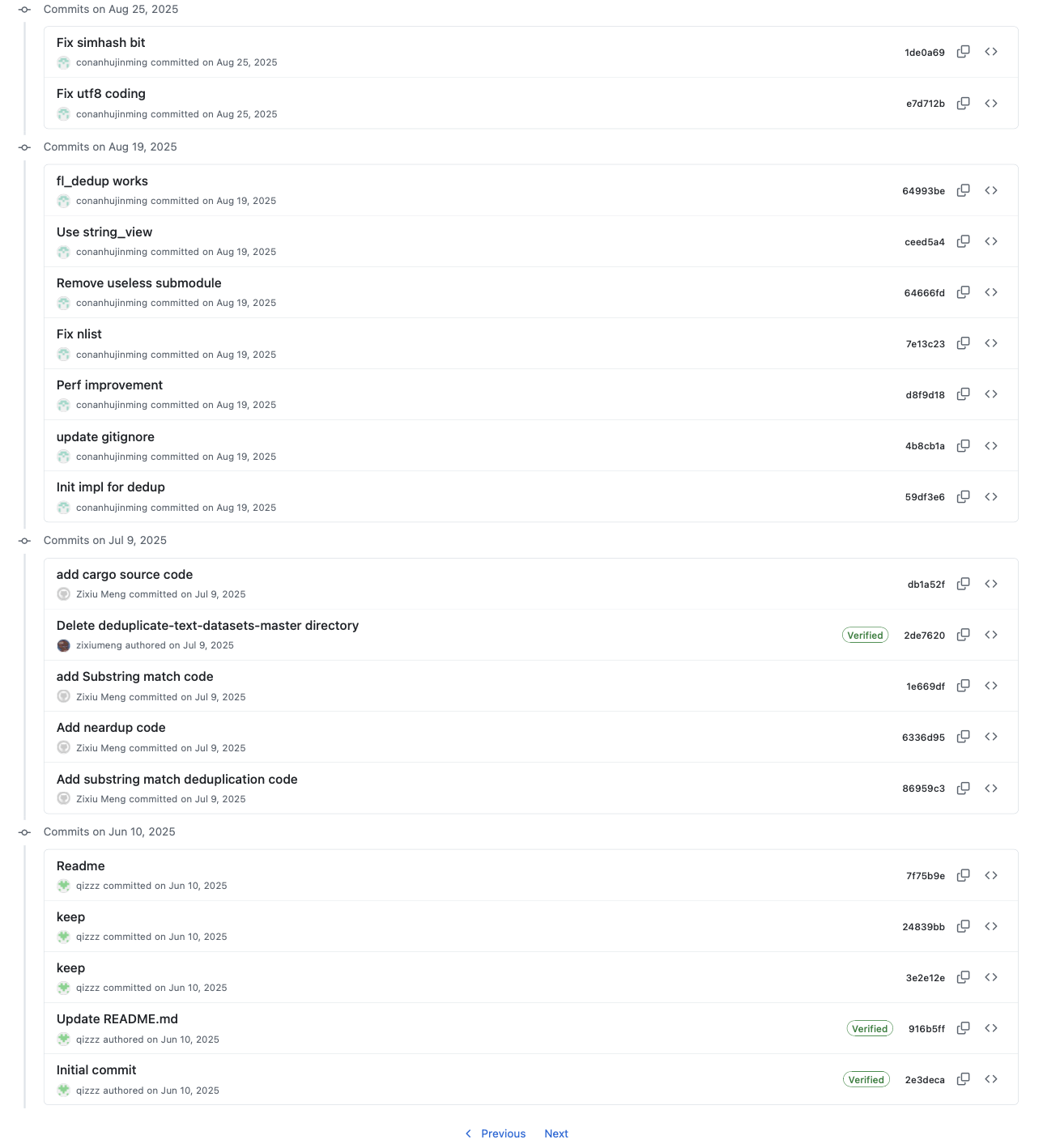 事实是这个数据去重项目(federated data deduplication)的idea我指导的两个本科生从很早之前就开始做了。 以下是这个项目的git commits截图,项目代码已经公开。