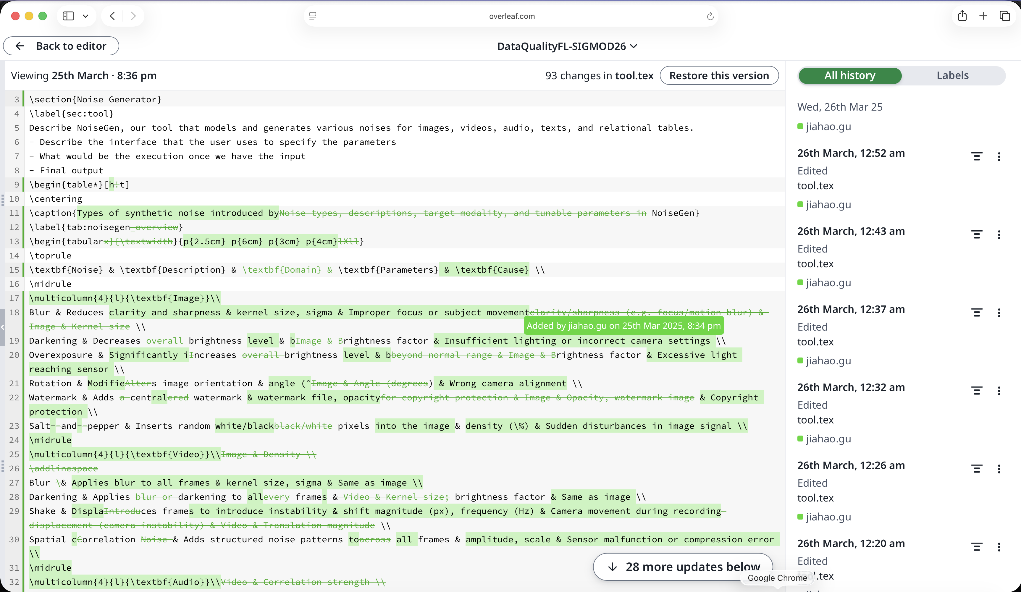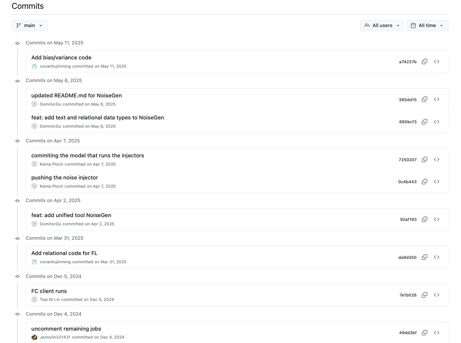 事实是这个工作我们2024年9月开始立项,紧接着我们在federated learning方向探索的第一步:federated learning impact on ML accuracy。JHG是我在UofT带过最优秀的本科生之一,他自立项到论文submission以及后来的revision都是项目的核心成员,贡献了很多代码实现、实验运行以及论文撰写。 以下是我们项目的GitHub repo(已公开)commits以及Overleaf repo history的截图。