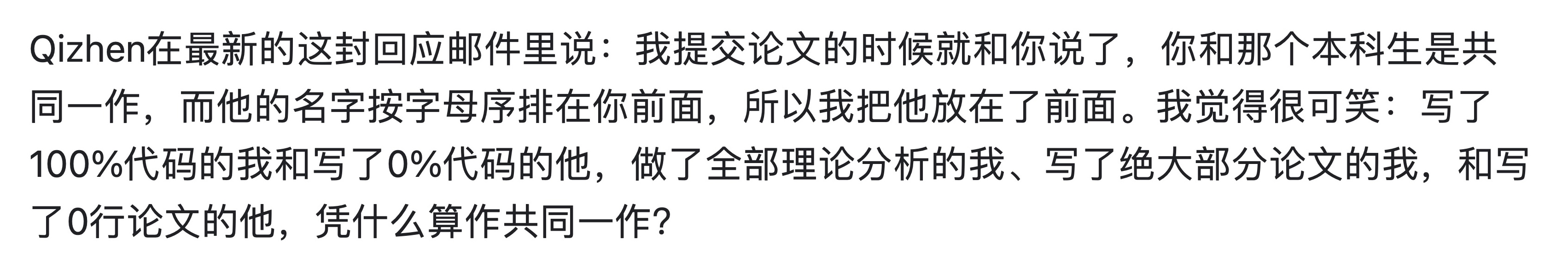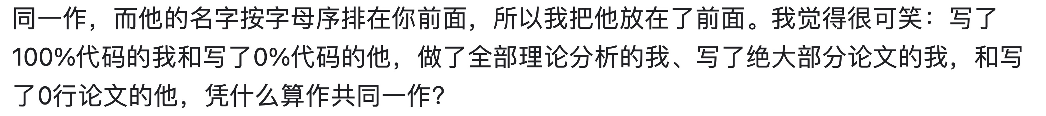 该论文有两位共同第一作者:JMH和Jiahao (Dominic) Gu(简称JHG)。 诽谤文章称JHG“写了0行代码、0行论文”: