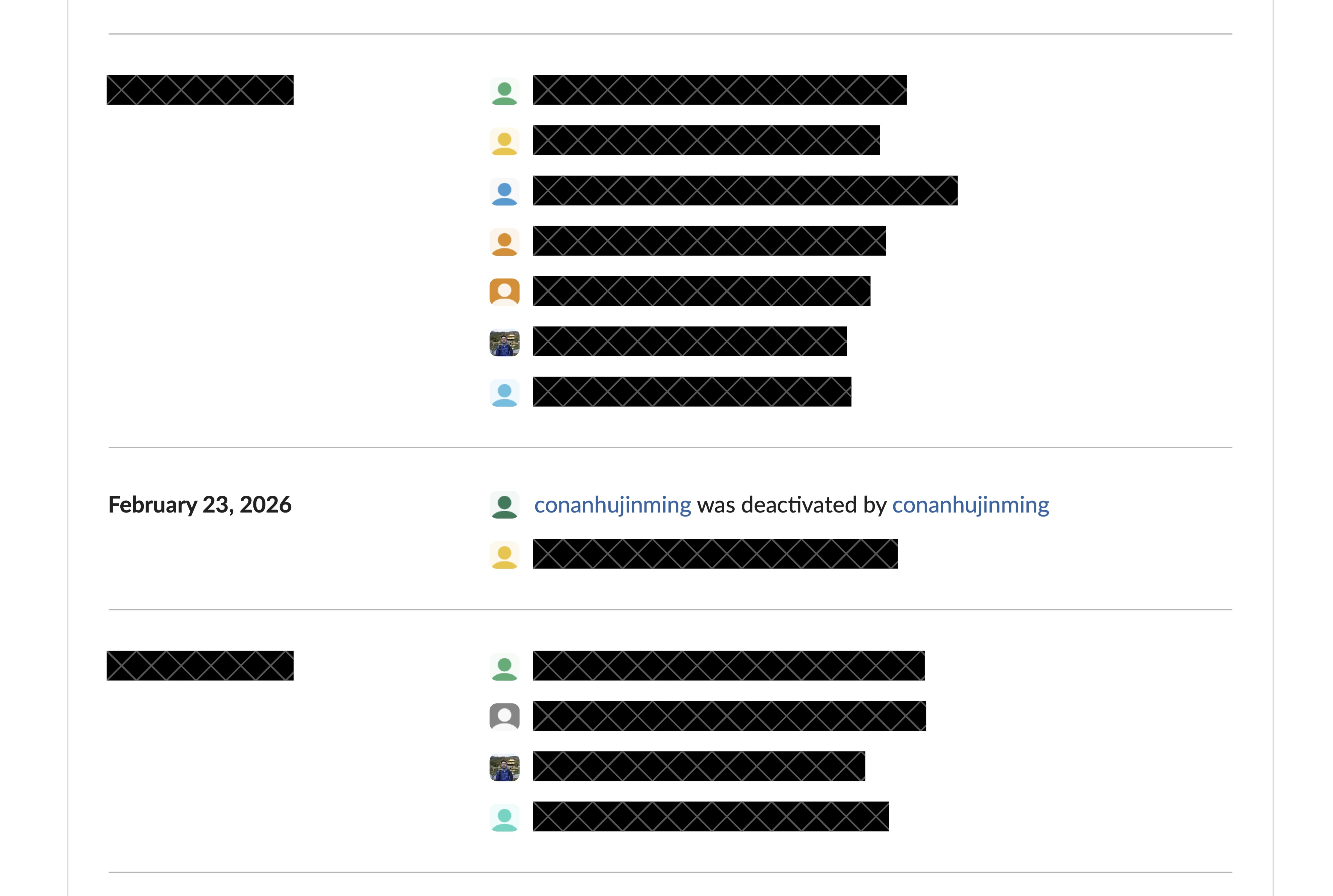 事实是2月23号在我来得及回复JMH的消息之前,他主动退出了我实验的Slack群组。 以下是Slack membership audit的截图。